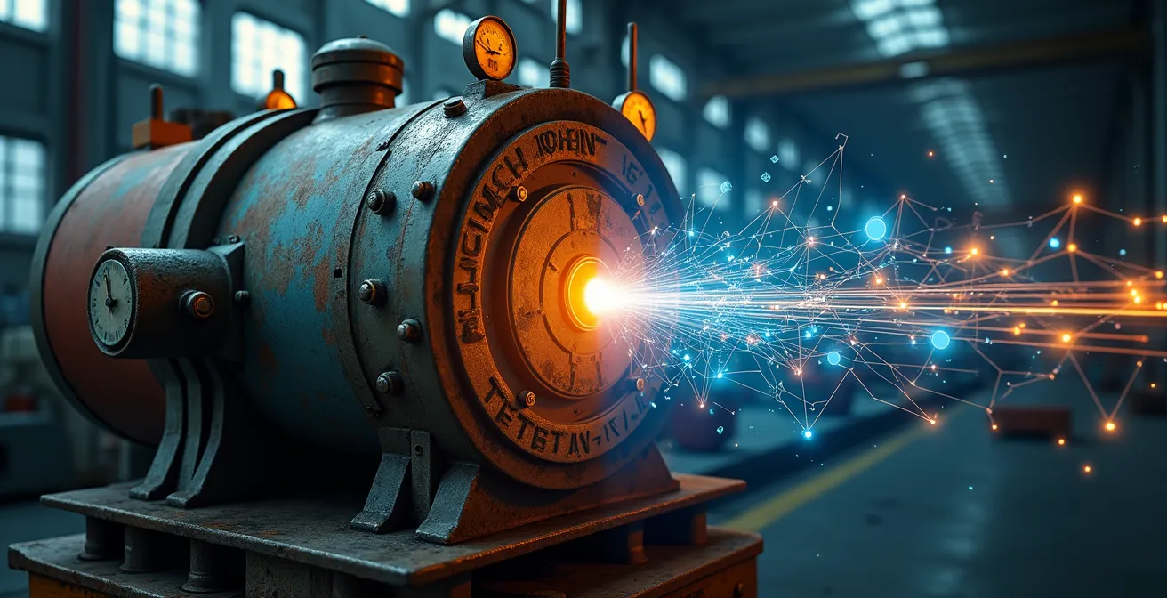 Pero, ¿y si el secreto no estuviera en la tecnología de vanguardia, sino en una especie de ingeniería de guerrilla? La verdadera clave para conectar su maquinaria legacy no reside en una gran inversión, sino en una serie de decisiones pragmáticas y calculadas. Se trata de entender que un sensor de 200€ bien elegido puede ofrecer más valor que un sistema de 50.000€, que optar por un protocolo abierto es un seguro contra el futuro «secuestro tecnológico» por parte de un proveedor, y que es crucial definir desde el principio el punto de inflexión económico en el que seguir invirtiendo en una máquina vieja deja de tener sentido.